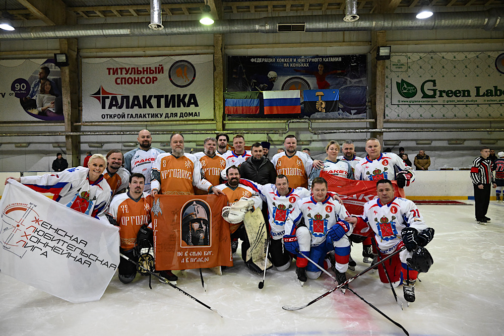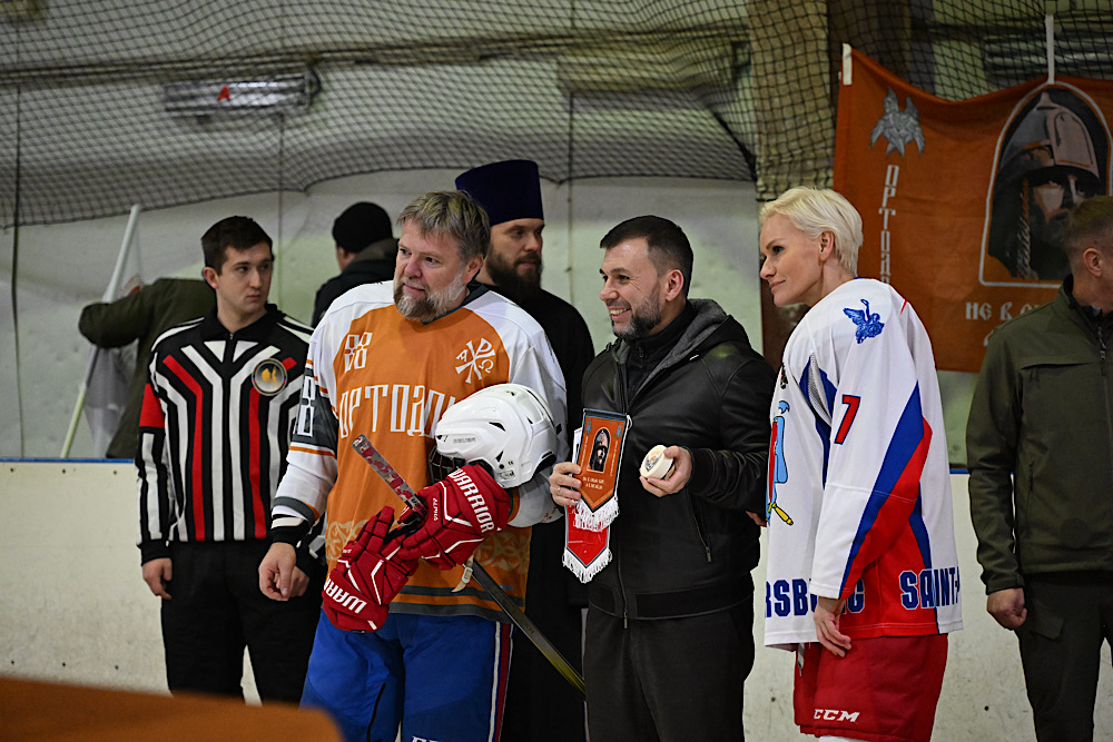Мероприятие продолжилось товарищеским матчем между командами хоккеистов-аматоров «Донецк» и «Сборная Санкт-Петербурга», который завершился со счетом 2:2. Примечательно то, что в состав питерской команды входят представители духовенства.