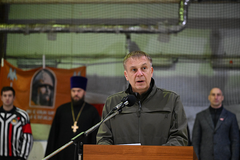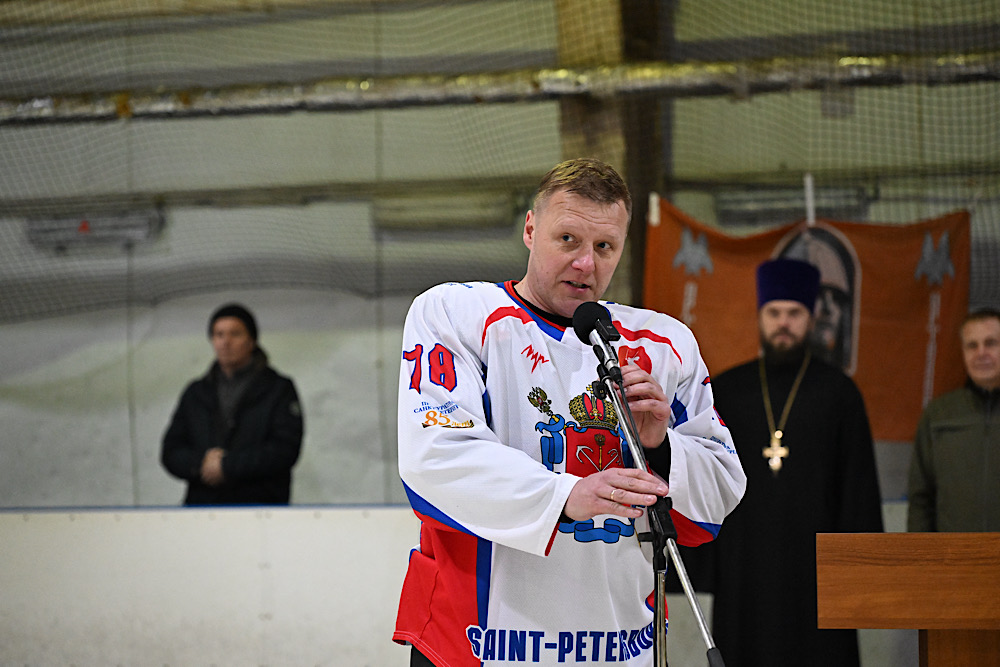 Слова приветствия от губернатора Санкт-Петербурга Александра Беглова передал председатель Комитета по межнациональным отношениям и реализации миграционной политики в Санкт-Петербурге Олег Капитанов. Он принял участие в открытии донецкого этапа Всероссийского чемпионата Ночной Хоккейной Лиги в составе команды «Сборной Санкт-Петербурга».
