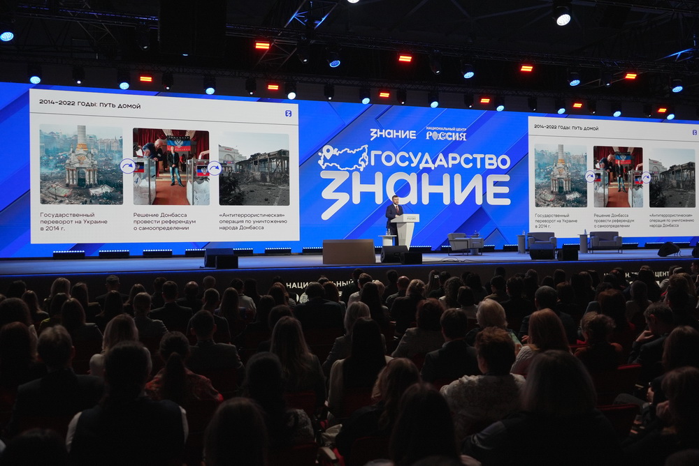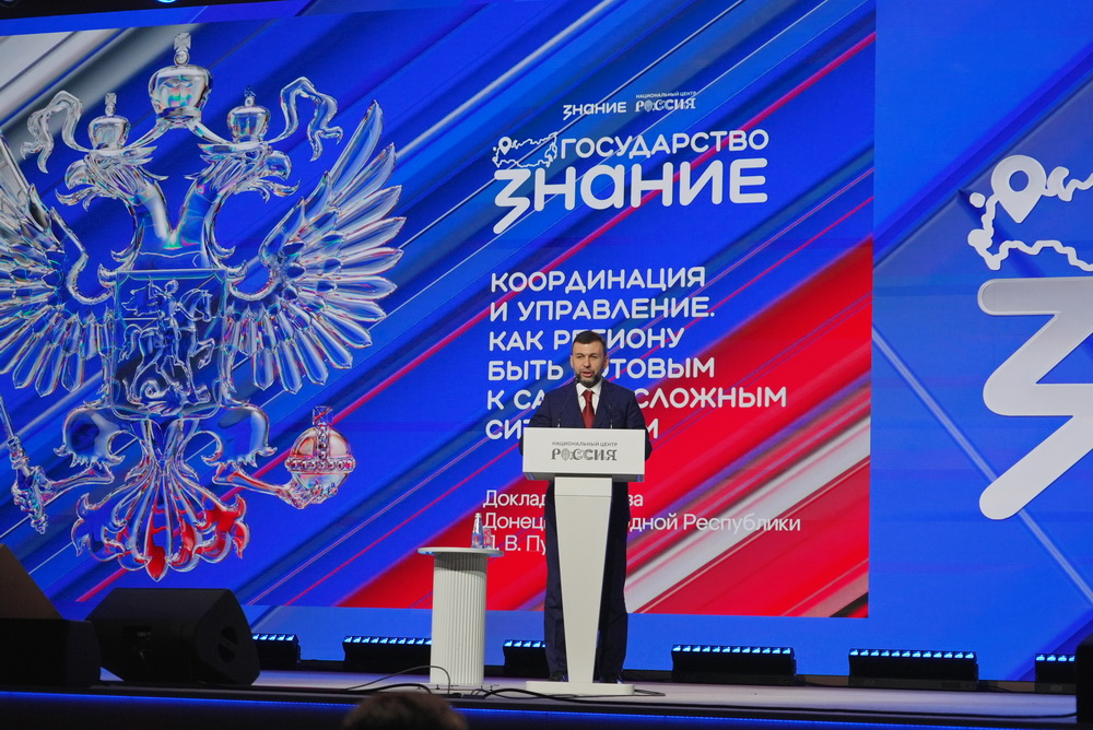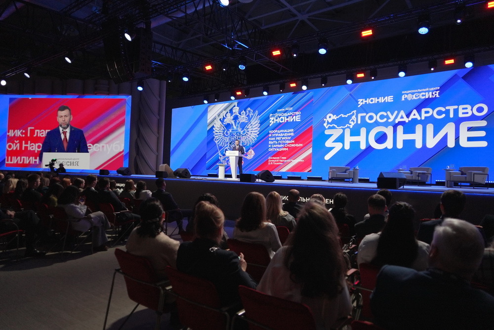 Глава Донецкой Народной Республики Денис Пушилин выступил на форуме «Знание. Государство» Российского общества «Знание» в Национальном центре «Россия».