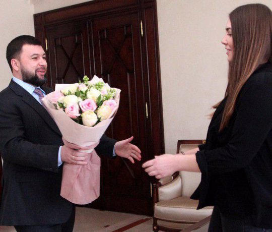 Глава ДНР Денис Пушилин провел встречу с российской рекордсменкой по пауэрлифтингу Марьяной Наумовой