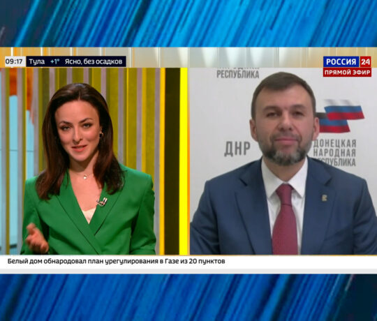 Ситуация на линии фронта, три года в составе РФ и решение проблем в сфере ЖКХ: Денис Пушилин – в эфире «России 24»