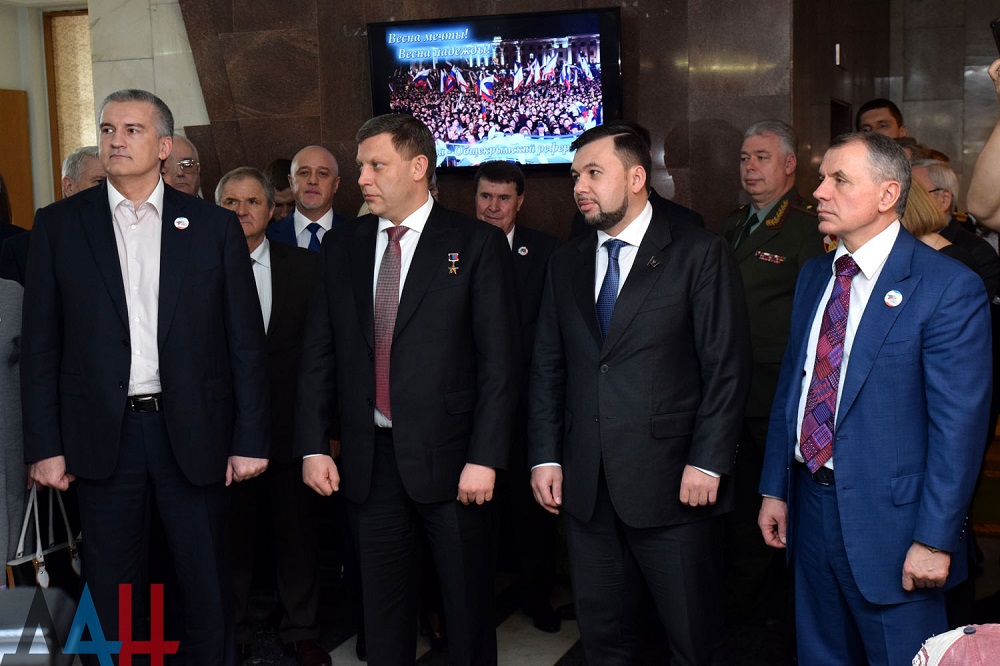 Донецкую Народную Республику представляют Глава ДНР Александр Захарченко, Председатель Народного Совета ДНР, руководитель Русского центра Денис Пушилин, заместитель Председателя Совета Министров Александр Тимофеев, заместитель Председателя Совета Министров Дмитрий Трапезников. В торжествах участвуют Глава Республики Крым, Председатель Совета министров Республики Крым Сергей Аксёнов, Председатель Государственного Совета Республики Крым Владимир Константинов, заместитель Полномочного представителя Президента Российской Федерации в Южном федеральном округе Кирилл Степанов.