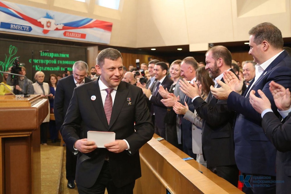 «От себя лично и от всего народа Донбасса хочу поздравить вас с этим днем. То, что вы сделали (в марте 2014 года – прим. ред.), – это действительно историческое событие. Мы со своей стороны с содроганием сердца ожидали этого референдума и думали, чего же ждать дальше. Ваш поступок стал примером для нас. Ваша победа вдохновила и наш народ», – подчеркнул лидер Донецкой Народной Республики.