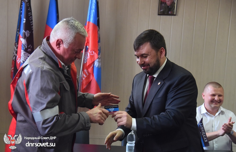 Сегодня, 27 мая, в Енакиево состоялось торжественное вручение членских билетов общественного движения «Донецкая Республика» сотрудникам Енакиевского коксохимического завода «Енакиевский коксохимпром». Мероприятие посетил Председатель Народного Совета ДНР, руководитель центрального исполкома ОД «Донецкая Республика» Денис Пушилин.