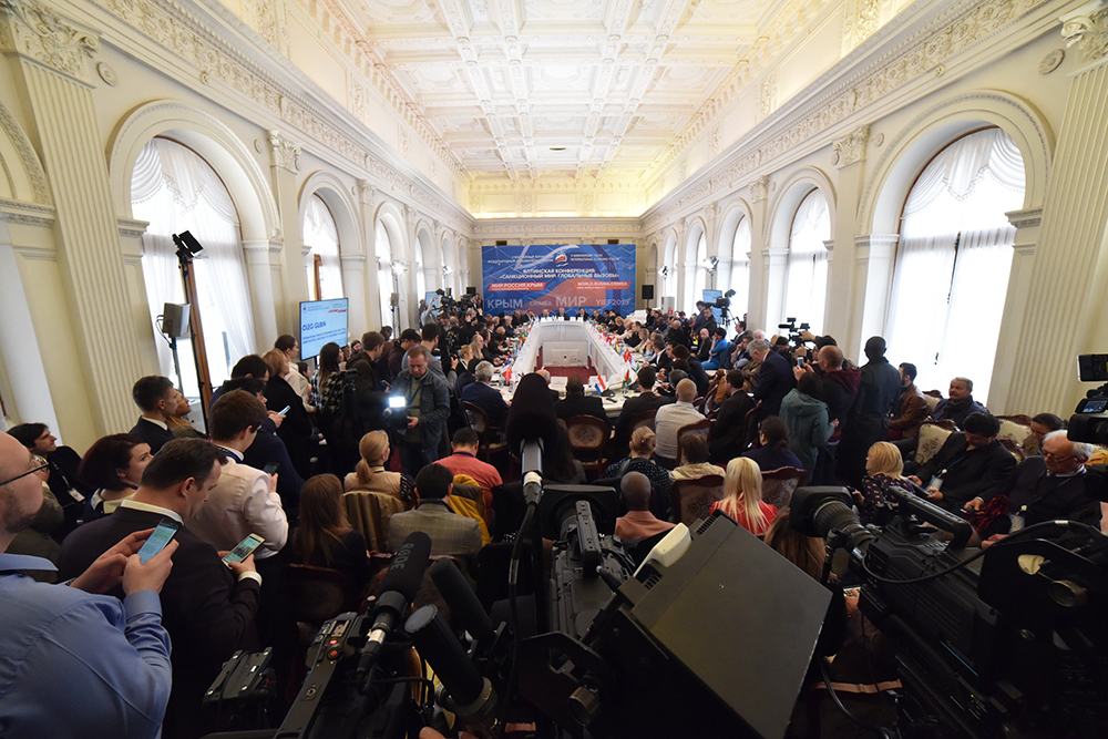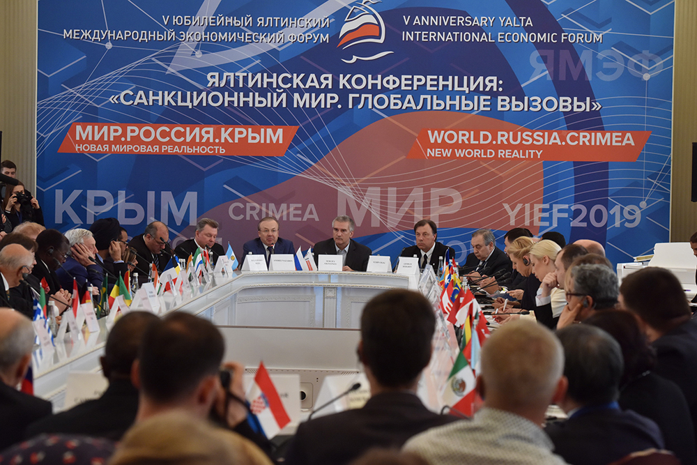 Открывая конференцию, Андрей Назаров отметил, что санкции против Российской Федерации были введены после того, как жители Крыма проголосовали за воссоединение с Россией.