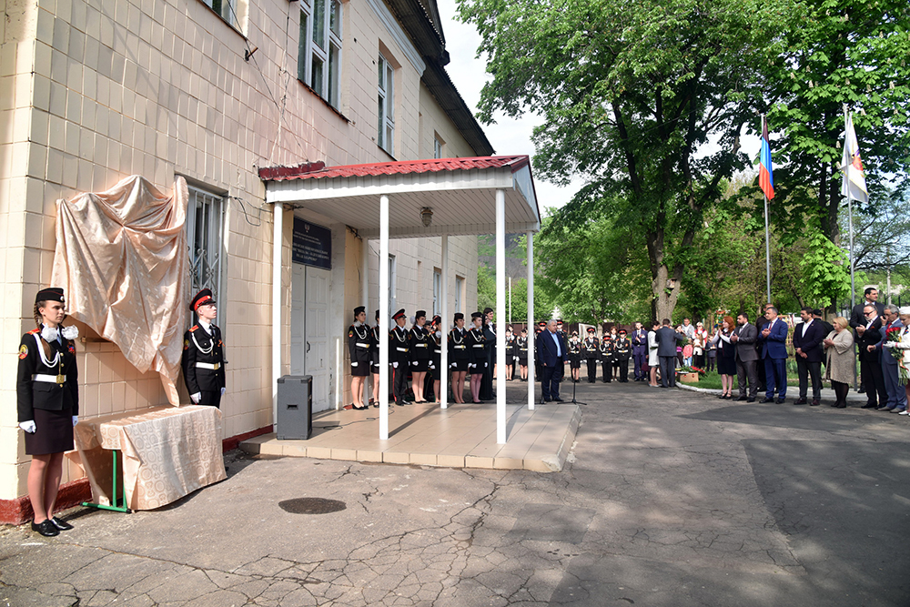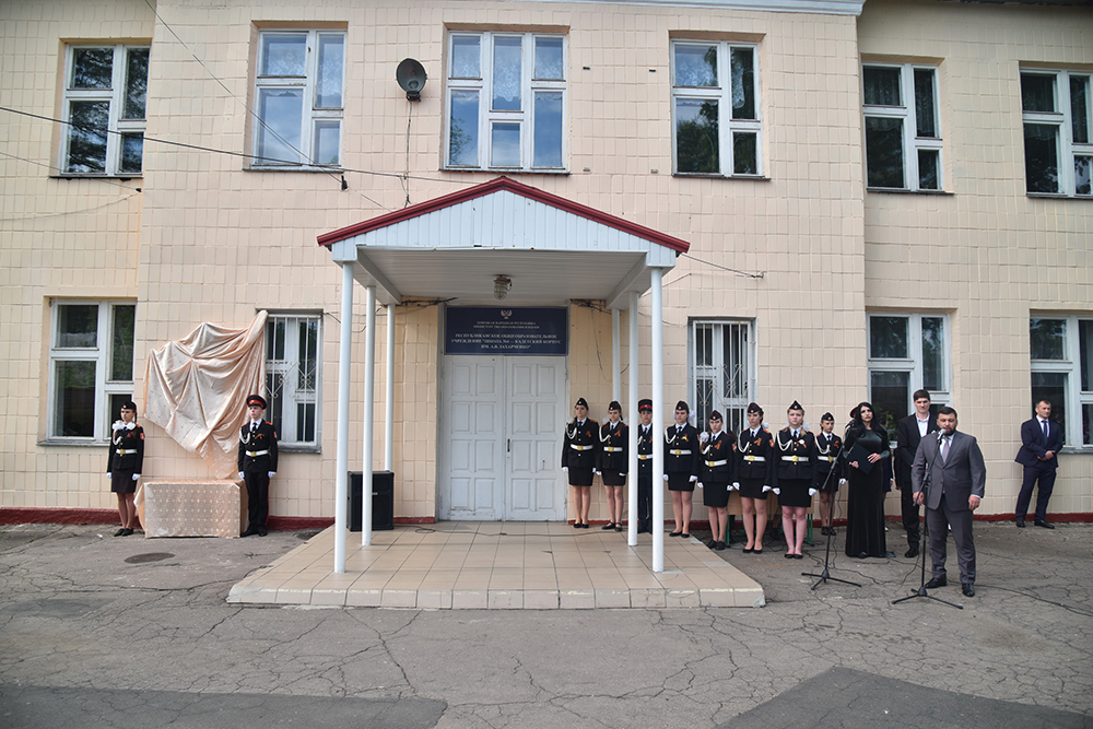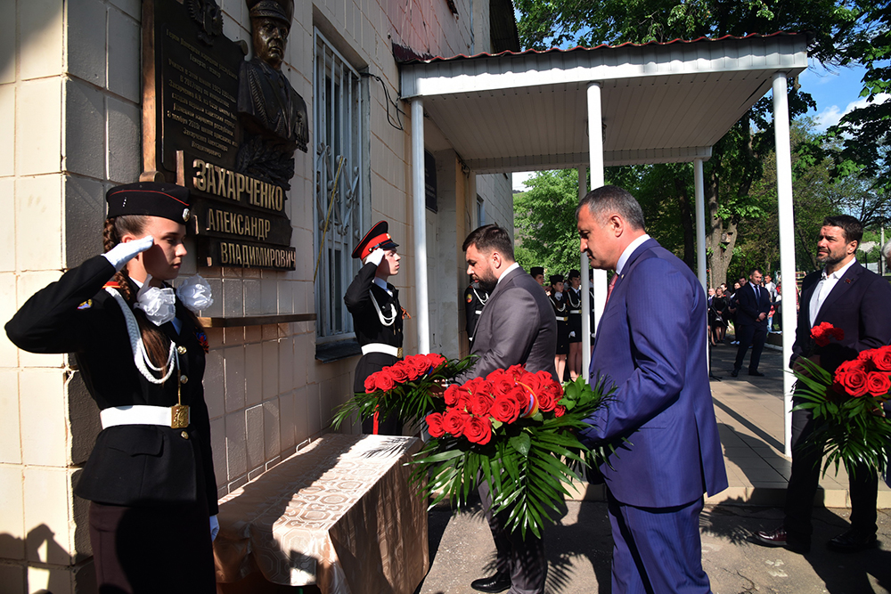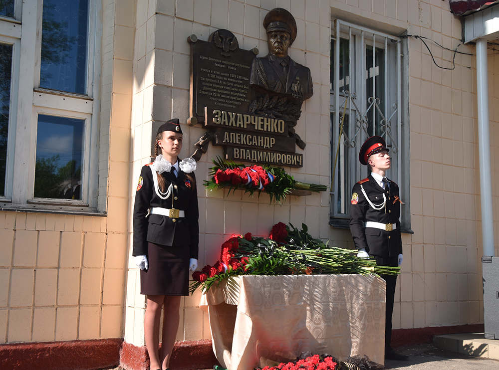 В пятницу, 10 мая, в Республиканском образовательном учреждении «Школа № 4 – Кадетский корпус им. А. В. Захарченко» в память о первом Главе Донецкой Народной Республики Александре Захарченко была открыта мемориальная доска.