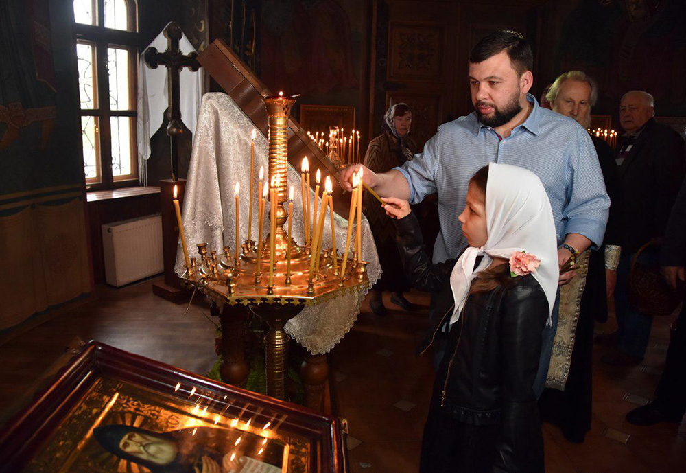 В воскресенье, 28 апреля, Глава Донецкой Народной Республики Денис Пушилин с семьей посетил праздничное пасхальное богослужение в Свято-Николаевском храме поселка Ясиновка города Макеевки.