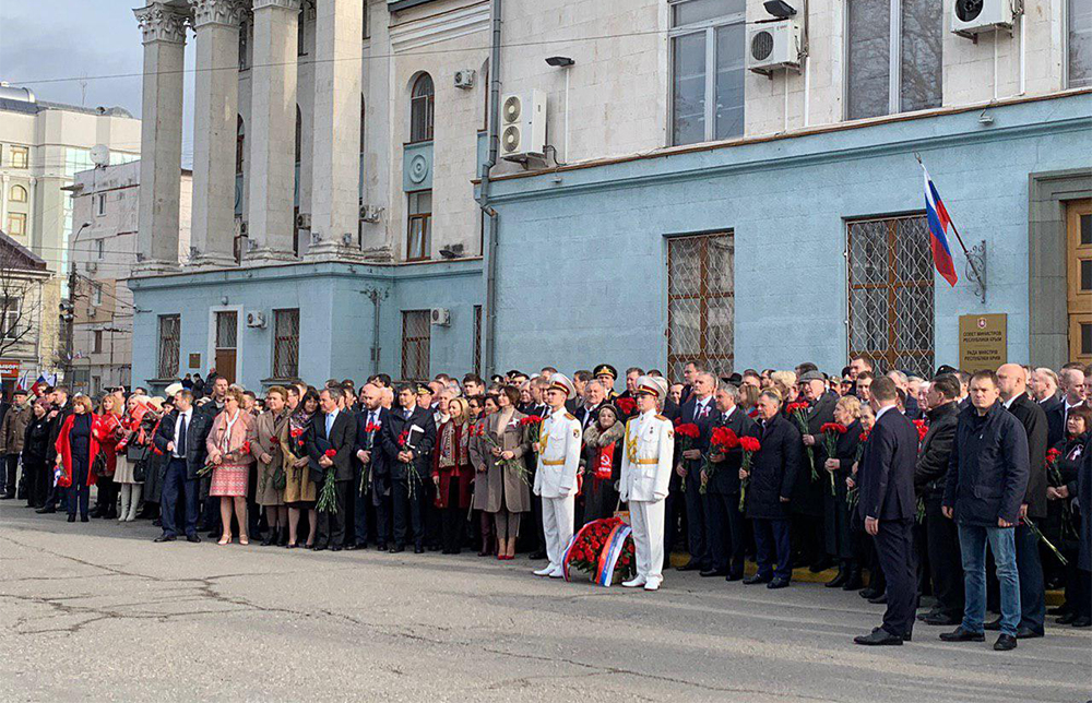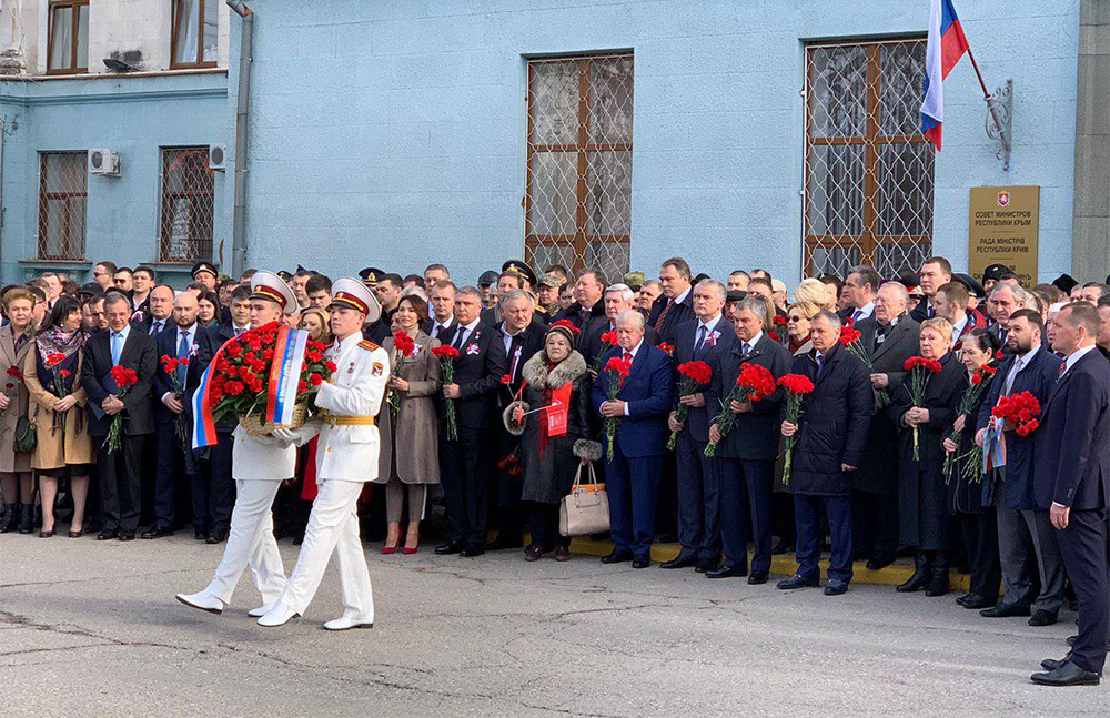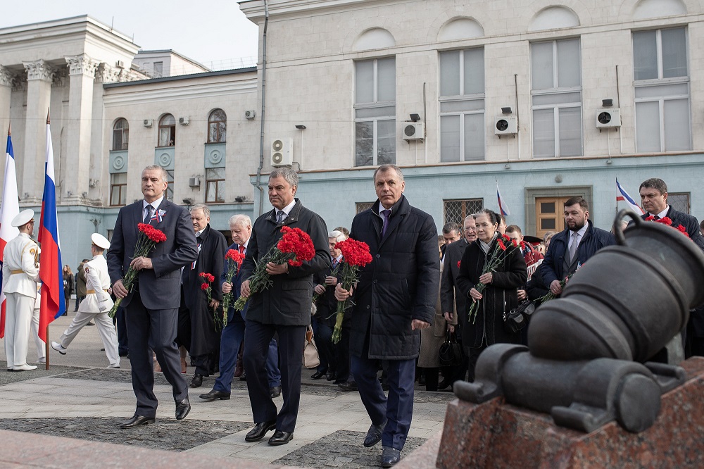 В возложении участвовали Глава Республики Крым Сергей Аксенов, Председатель Государственного Совета Республики Крым Владимир Константинов, Председатель Народного Совета ДНР Владимир Бидёвка, жители и гости города.