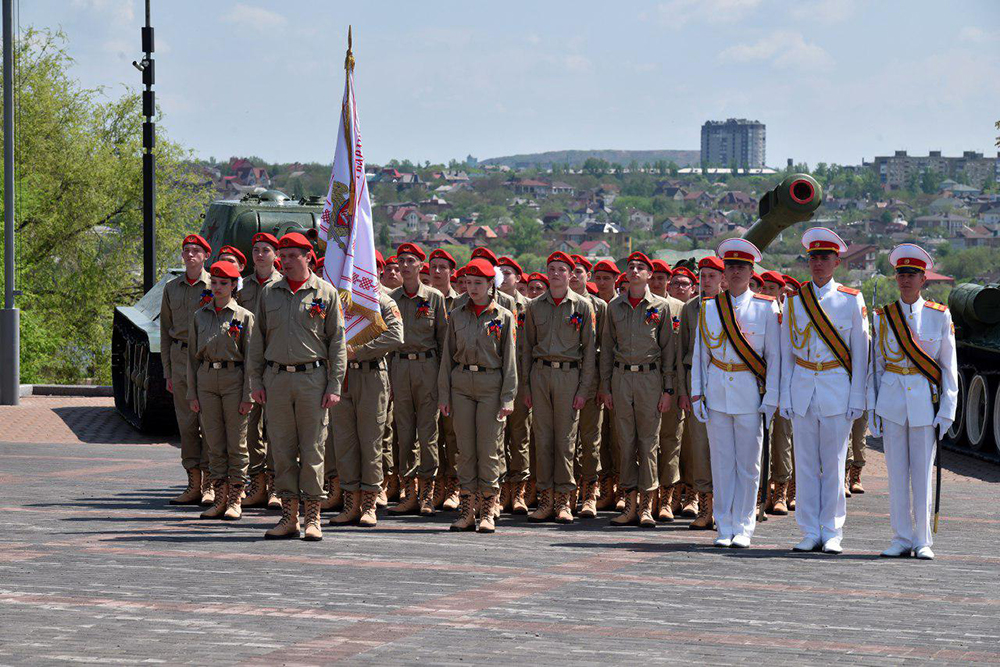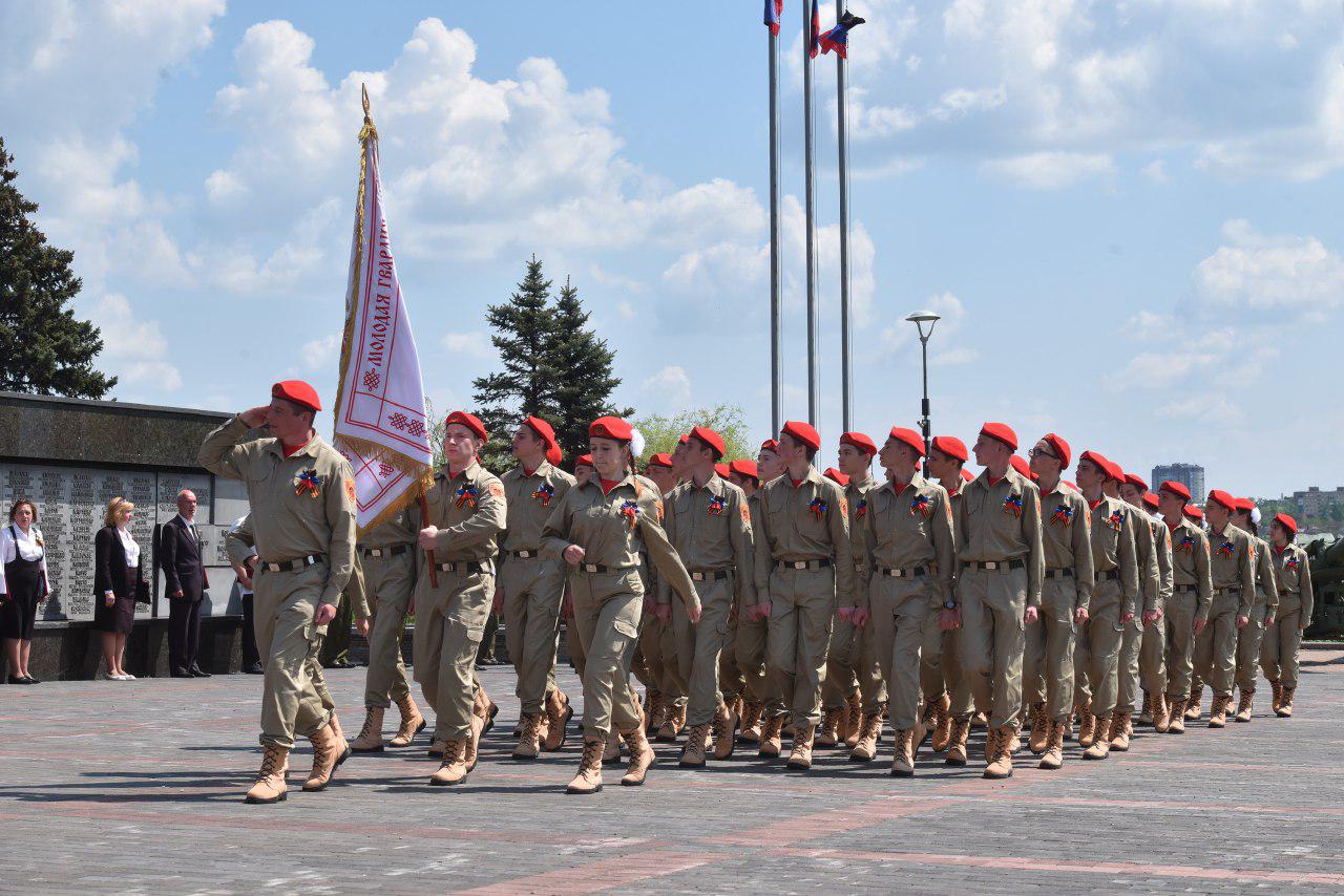 Торжественная церемония приведения к присяге участников военно-патриотического движения «Молодая Гвардия – Юнармия» состоялась сегодня, 4 мая, у мемориального комплекса «Твоим освободителям, Донбасс!». Присягу приняли 77 воспитанников военно-патриотических, военно-исторических клубов, кружков и объединений.