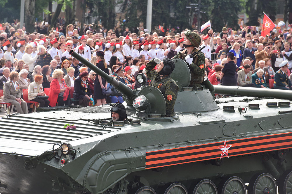 В четверг, 9 мая, в Донецке прошел военный парад, посвященный 74-й годовщине Победы советского народа в Великой Отечественной войне. В праздничном мероприятии на главной площади столицы приняли участие Глава Донецкой Народной Республики Денис Пушилин, члены Правительства, депутаты Народного Совета, десятки тысяч жителей и гостей Республики.