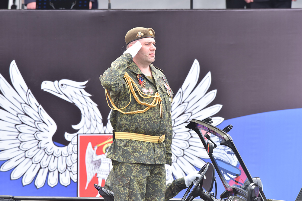 Военный парад принял начальник Управления Народной милиции ДНР генерал-майор Денис Синенков. По завершении объезда войск он представил доклад Верховному главнокомандующему Денису Пушилину.