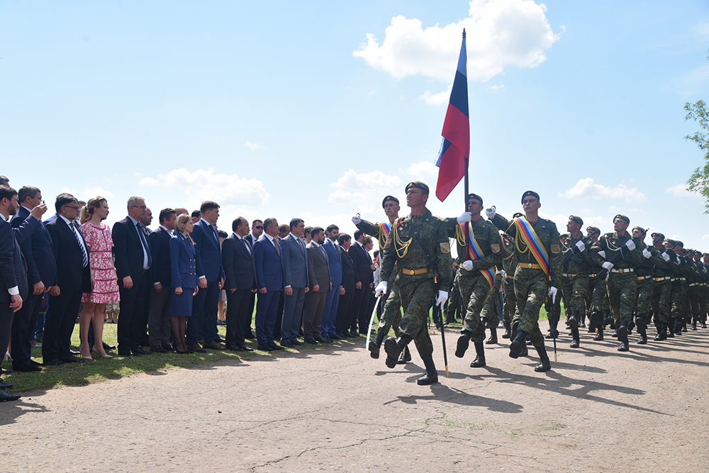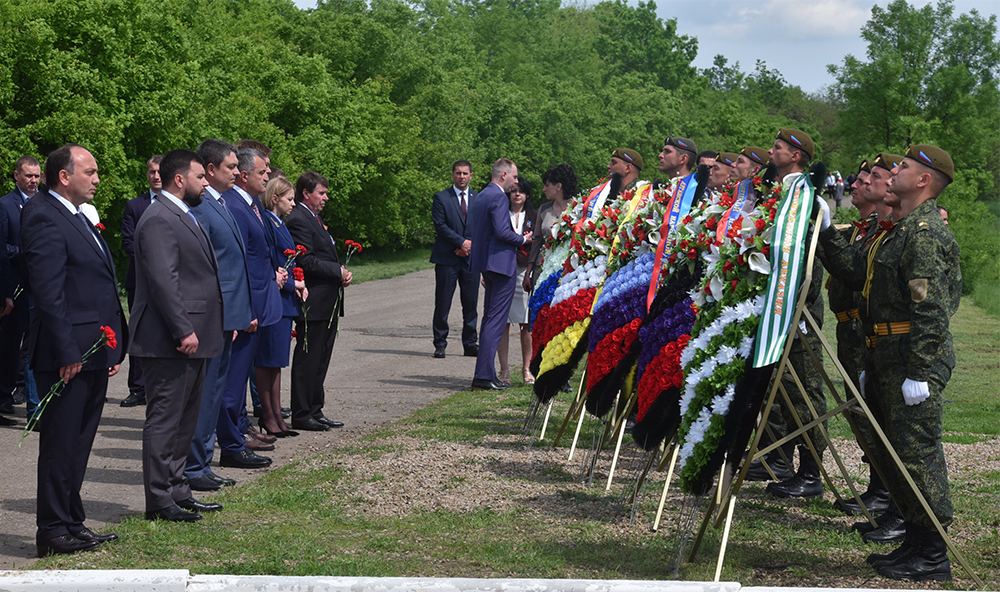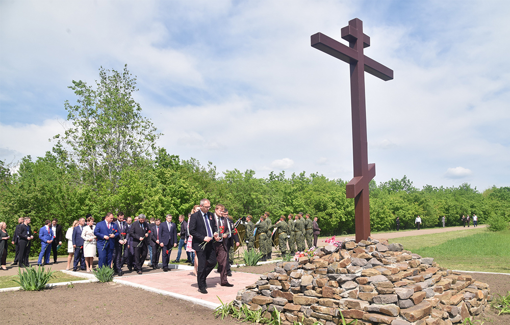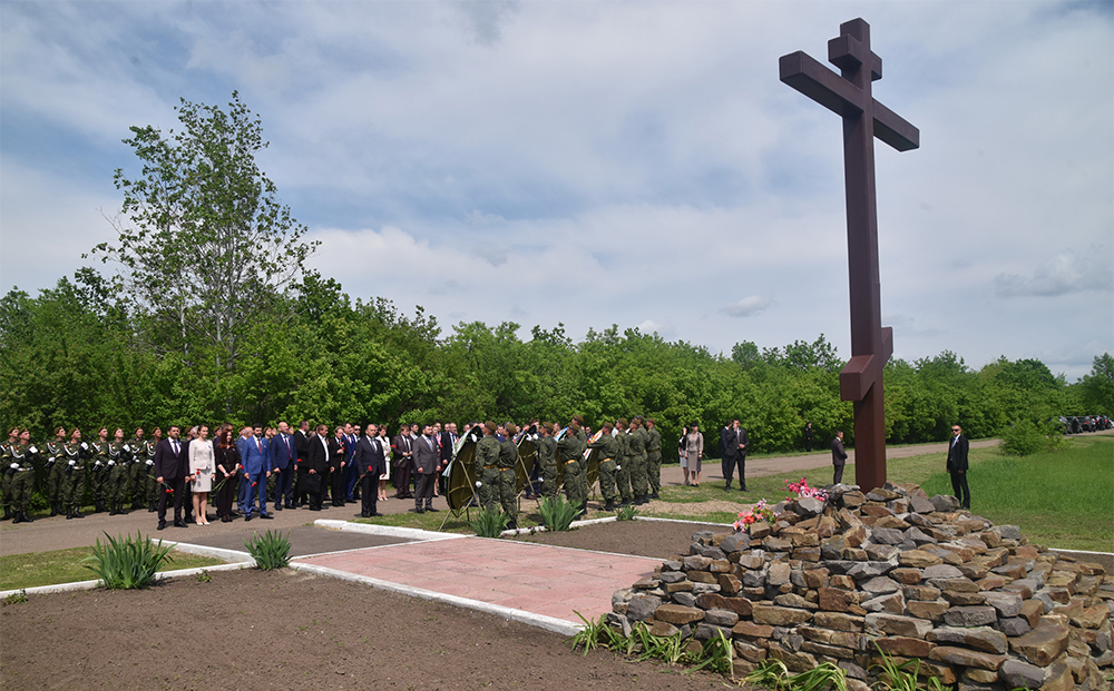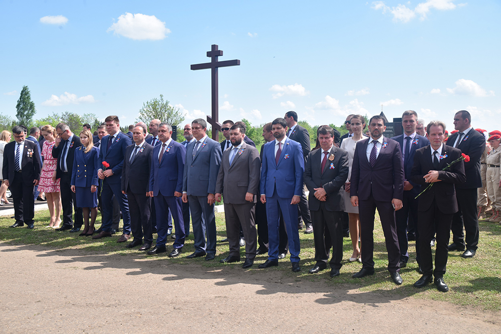 Глава ДНР Денис Пушилин, Глава ЛНР Леонид Пасечник, Президент Республики Южная Осетия Анатолий Бибилов, министр иностранных дел Республики Абхазия Даур Кове, депутаты Государственной Думы Российской Федерации Казбек Тайсаев, Андрей Козенко, Наталья Поклонская и другие почетные гости ЛНР почтили минутой молчания память мирных жителей, погибших от украинской агрессии, и возложили цветы к подножию поклонного креста.