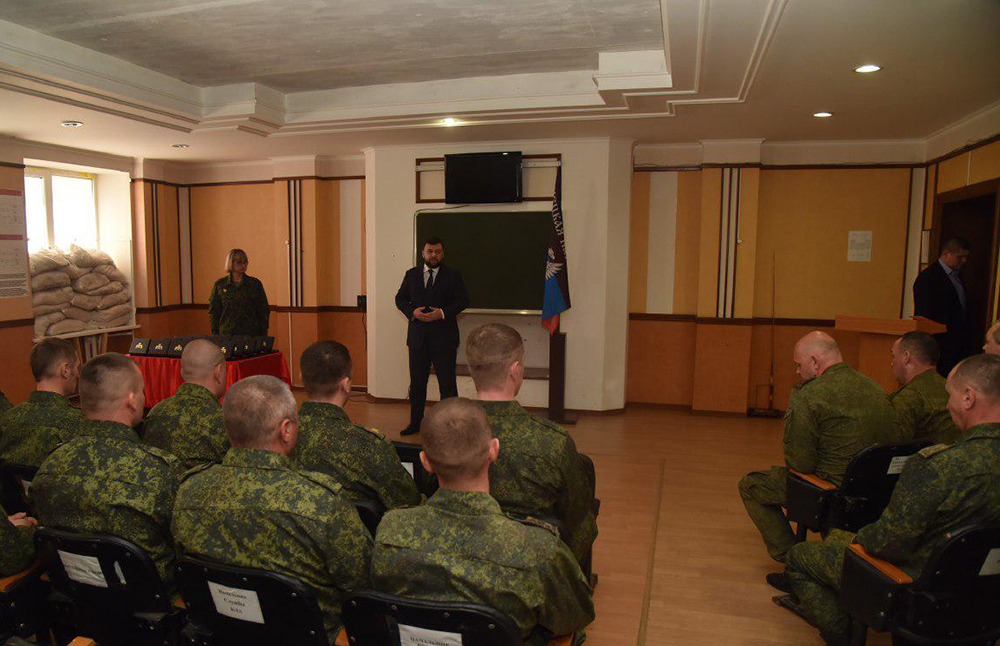 «Товарищи военнослужащие! Для меня сегодня честь находиться здесь и вручать вам награды! Вы – настоящим герои! На вас возложена ответственная и серьезная миссия – защищать наши дома, наши семьи, нашу Родину. Вы находитесь на самой передовой нашей борьбы и должны понимать, что мы работаем над развитием экономики, ваши семьи будут иметь достойную работу, дети будут учиться, разговаривать на том языке, на котором привыкли, историю будут учить ту, которую мы слышали от наших предков, а не искаженную.