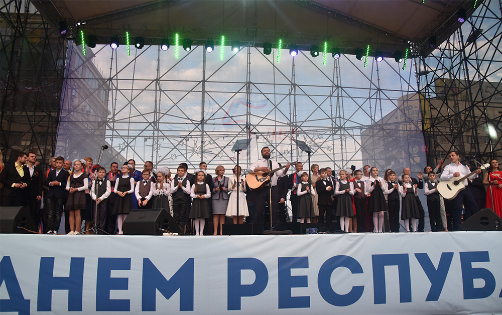 Сюрпризом для жителей и гостей Республики стало исполнение Денисом Пушилиным песни Андрея Старинцева «Россия – Родина-мать».
