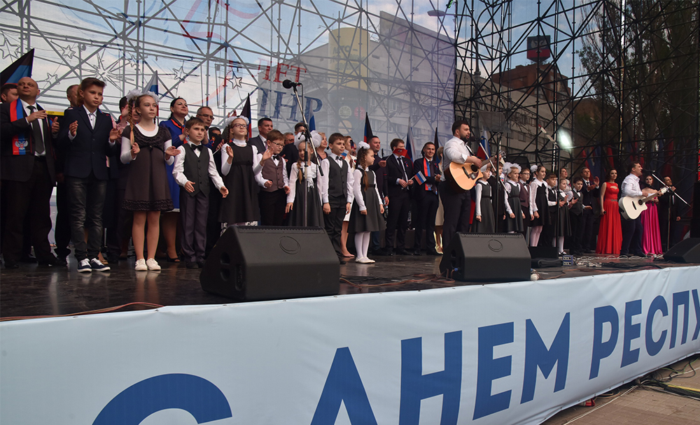 Я думаю, что выражу всенародное мнение, если сегодня с этой сцены скажу слова благодарности за это важное и очень своевременное решение. За этот подарок народу Донбасса к нашему главному государственному празднику. Спасибо, Владимир Владимирович! Спасибо, Россия! Вместе мы сила! С праздником! С Днем Республики!» — сказал глава государства.