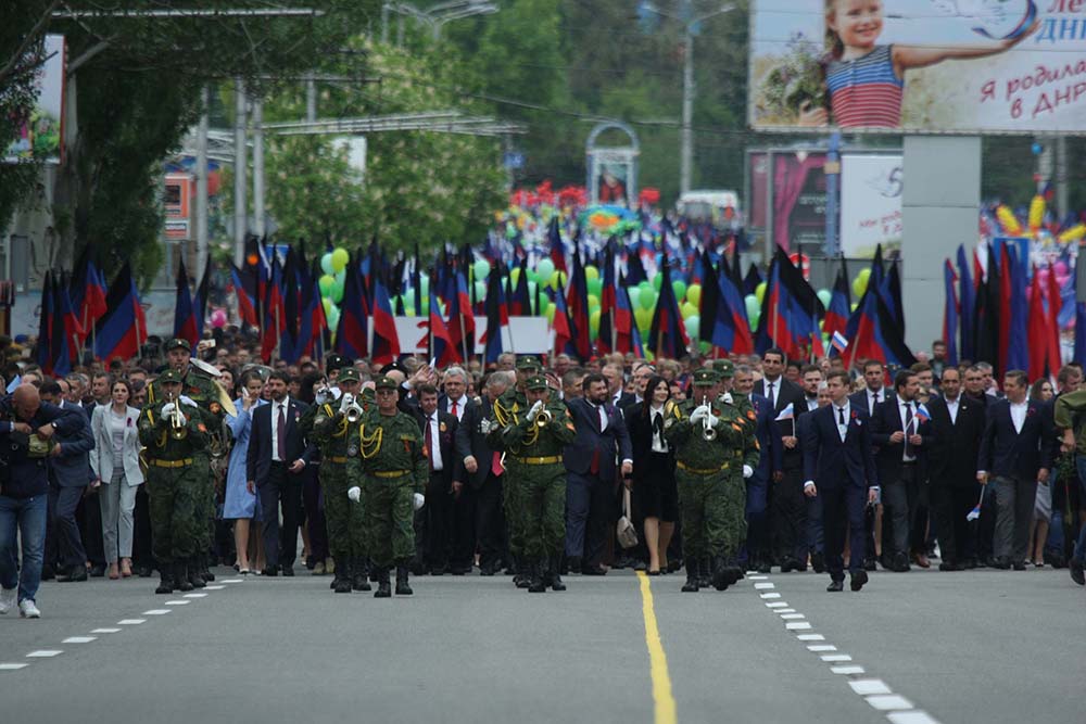 По окончании праздничного шествия Глава ДНР поздравил жителей с первым юбилеем Донецкой Народной Республики.