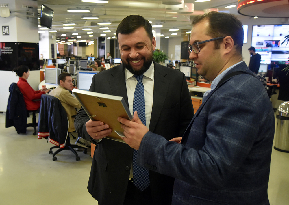 В пятницу, 17 мая, Глава Донецкой Народной Республики Денис Пушилин в ходе визита в офис МИА «Россия сегодня» в Москве попробовал себя в качестве выпускающего РИА Новости и выпустил «молнию» на ленту.